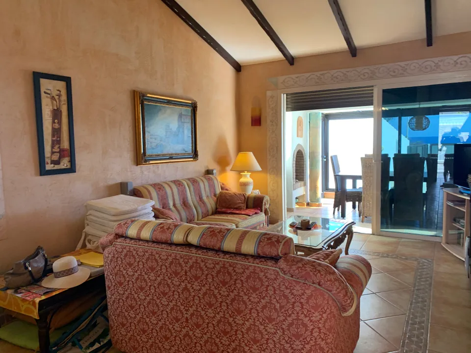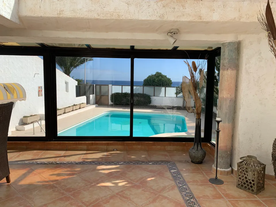 It is a closed park of bungalows, separated from the rest of the urbanization, with century-old palm trees and a community pool. The furnished villa, renovated in rustic style with great attention to detail, consists of entrance, open living room and kitchen, winter garden, two bedrooms each with en-suite bathroom, as well as a large private lounge. Terrace and roof terrace with an exceptional view of the Dunes and the Ocean and a parking space and a front patio for your best holiday.